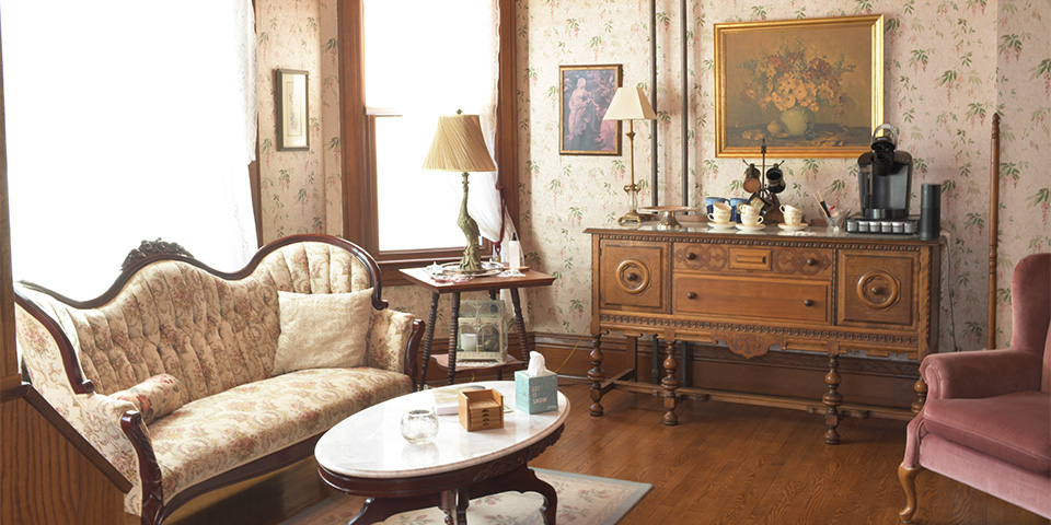 The home's main floor has two parlors, a dining room, and kitchen. Our newest addition is the Nordic Guest House. There are three guest bedrooms on the second floor: the Rose Room, the Heritage Suite, and Anna's Suite. The third-floor is the North Star Suite. There's a century-old horse barn on the property.
