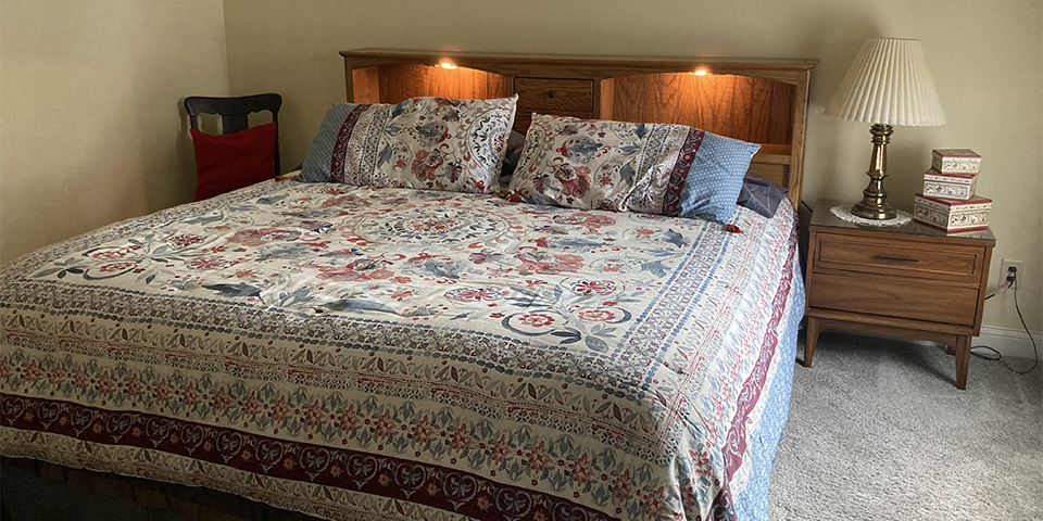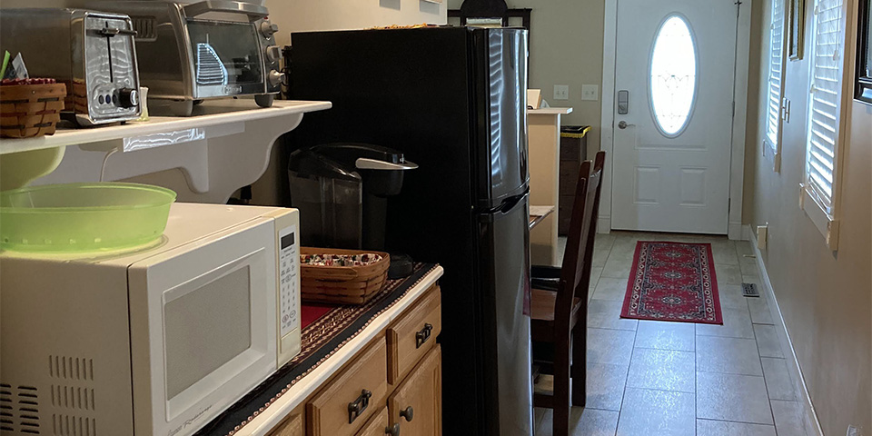 Come enjoy our newest space at Anna V's! This first floor space offers a spacious getaway for up to four people with a king-sized bed and sitting room on one side. A separate space with pull-out sleeper sofa and private covered deck to enjoy time outside. There is a TV, fireplace, coffee maker, refrigerator, and a desk to work at if needed. Lots of space to relax both indoors and outdoors.